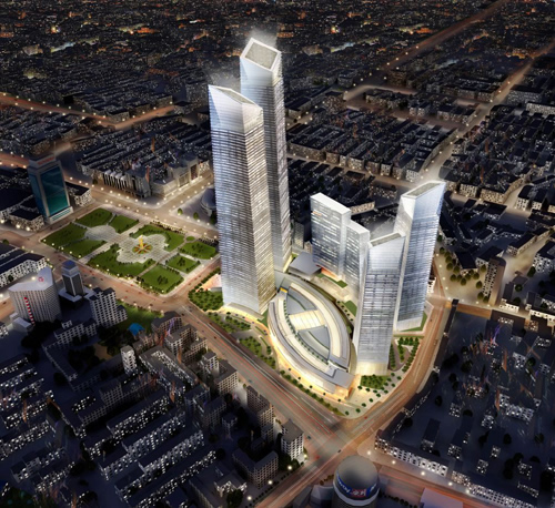 由香港恒隆房地产有限公司开发的现今沈阳最大的港方独资商业地产项目——沈阳恒隆市府广场。规划建设世界级购物中心、办公楼群、5A级高档写字间,美国 LEED认证白金六星级酒店及服务式寓所,建筑面积约达150万平方米,其中双塔楼高度分别为350.8米、400米。