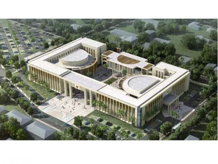 国民议会和参议院办公及会议用房。拟建规模总建筑面积为24000㎡,包括国民议会办公及会议楼、参议院办公及会议楼,以及两院共用的宴会厅兼多功能厅和附属用房等。国民议会用房建筑面积为12290㎡;参议院用房建筑面积为8710㎡。两院共用面积为3000㎡。