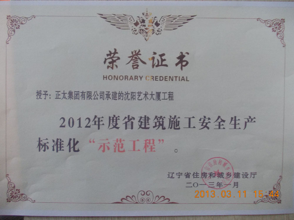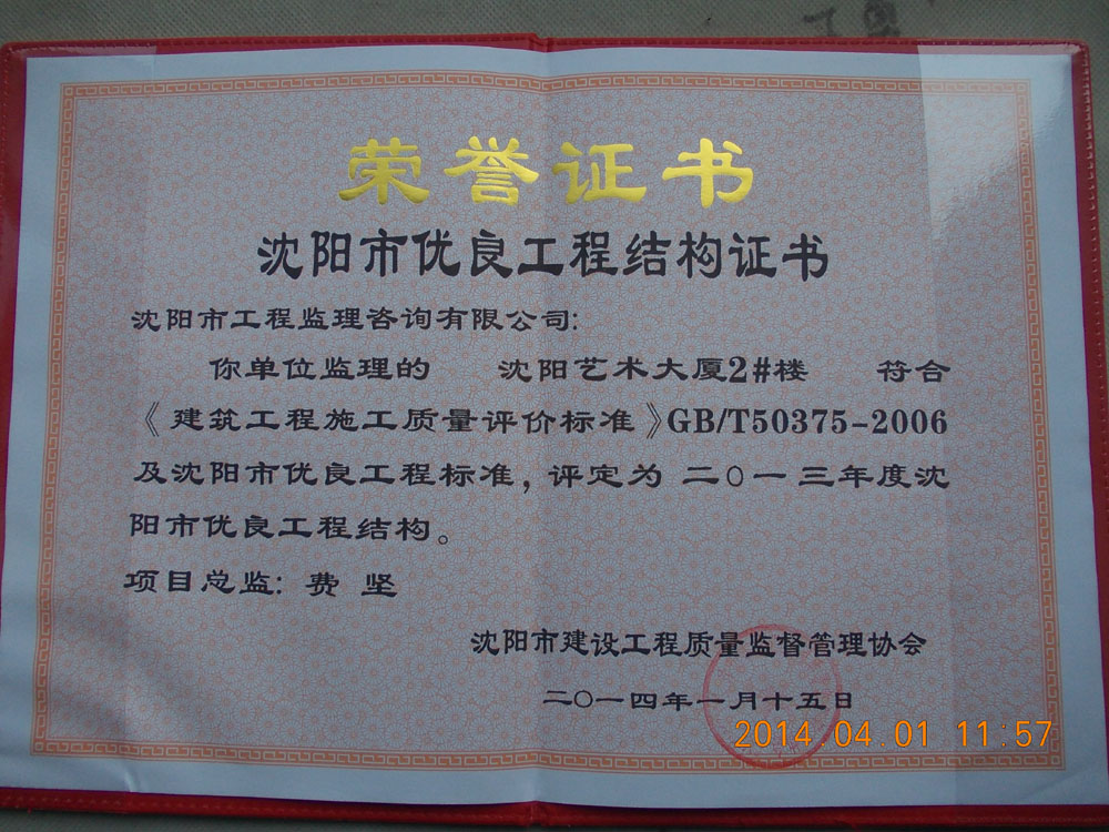 2#楼被评为“二零一三年度沈阳市优良工程结构”