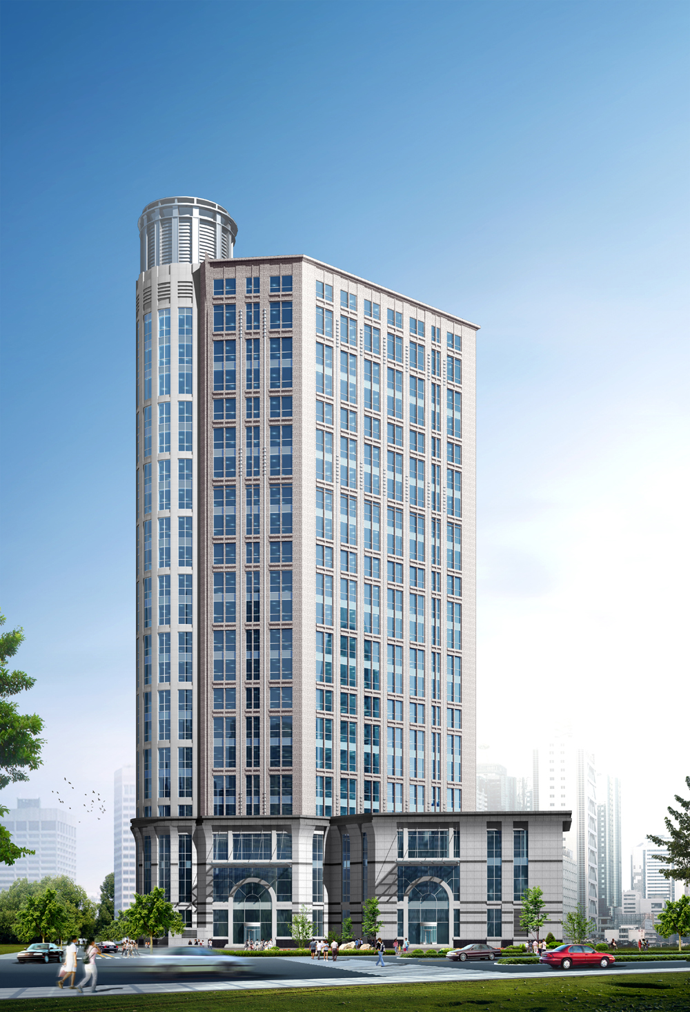 本项目包括一栋塔楼、三层裙房和三层地下室。一栋塔楼为商业办公楼、三层裙房为餐饮,三层地下室主要为车库、机房等配套设施。地下建筑面积9528.37㎡、地上43905.69㎡,为钢筋混凝土框架剪力墙结构,地下3层,地上23层,建筑高度为99.5米。