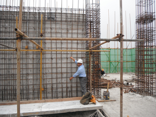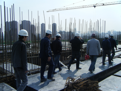 9、 场地概况:本工程场地设计在肿瘤医院院区内(小河沿路),南侧紧临小河沿路,并且有高压线、变压器,北侧为肿瘤医院治疗室,东侧为院区核医学室,西侧紧临院区内就诊人员主要通道,本工程场地地势南低北高(北侧室内外高差0.3m,南侧室内外高差0.9m),四周供施工可用场地十分有限,对标准化组织施工十分不利。