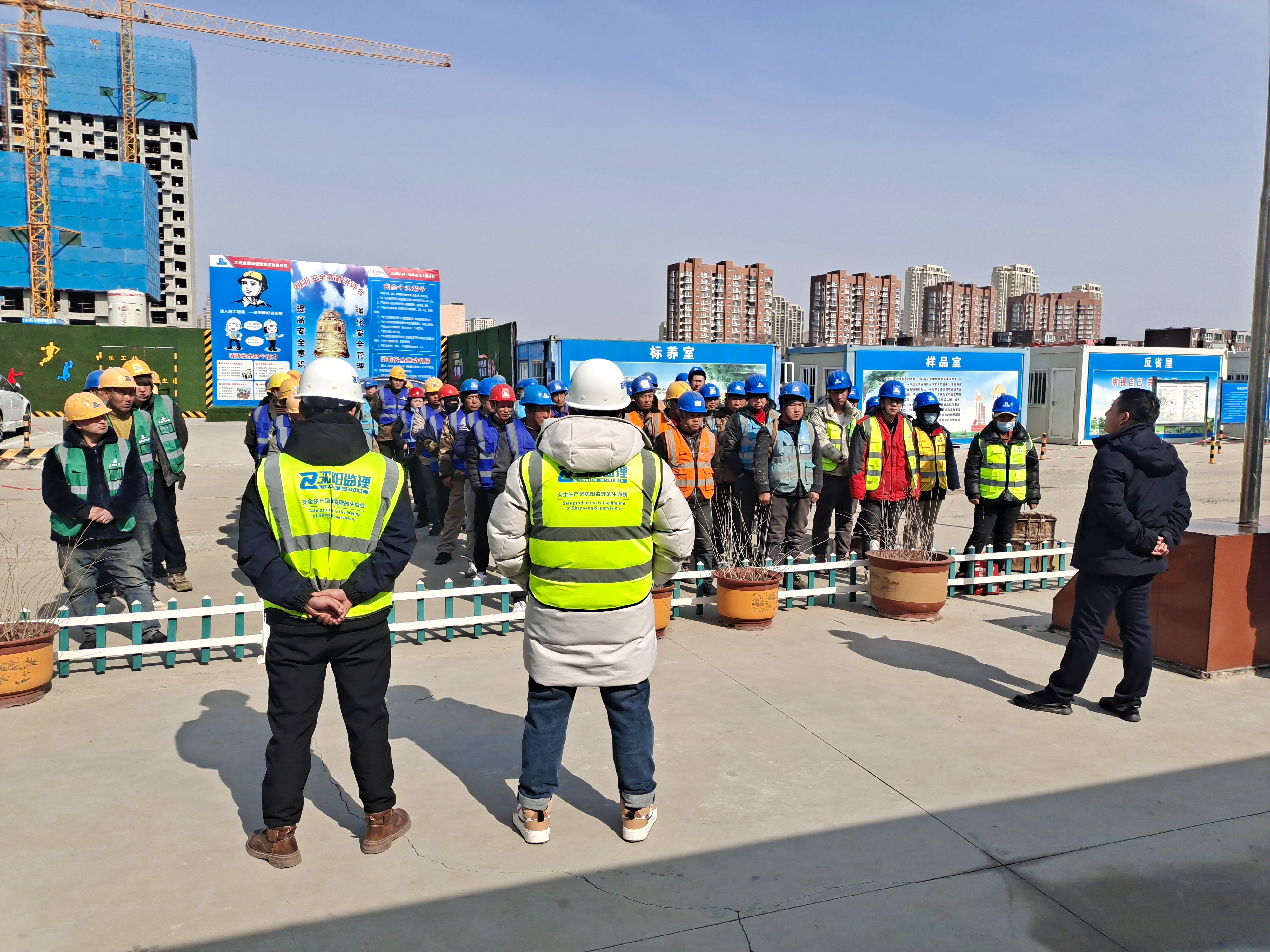 华润御华府项目进场第一天项目监理部,对进场施工人员进行安全宣讲