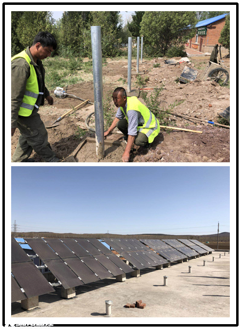 北票电力光伏项目 地面部分灌装及安装光伏面板