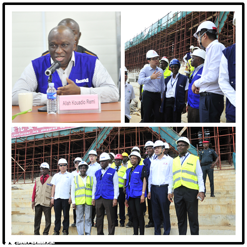 科特迪瓦大工局行政顾问董事Allah Kouadio Remi、大工局秘书长Moulod Adoubi Josiane及相关陪同人员等莅临援科特迪瓦阿比让体育场项目视察。