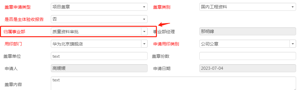 2、盖章申请(增强专业审批,新增安全、质量类资料审批,如图2所示)