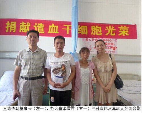 目前,我国有近400余万白血病等血液病患者挣扎在死亡边缘,每年有近3万个白血病患者黯然离去。他们正殷切期盼着我们每个人伸出援助之手,等待着万分之一配型成功的生命曙光,等待造血干细胞移植,挽救生命。为了挽救更多白血病患者的生命,为了推动良好社会道德风尚的形成,托起无数濒临绝境的患者的生命希望,我们的社会需要千千万万孙宏伟这样平凡而伟大的爱心使者,用博爱和勇气谱写一曲曲和平时代的英雄颂歌。